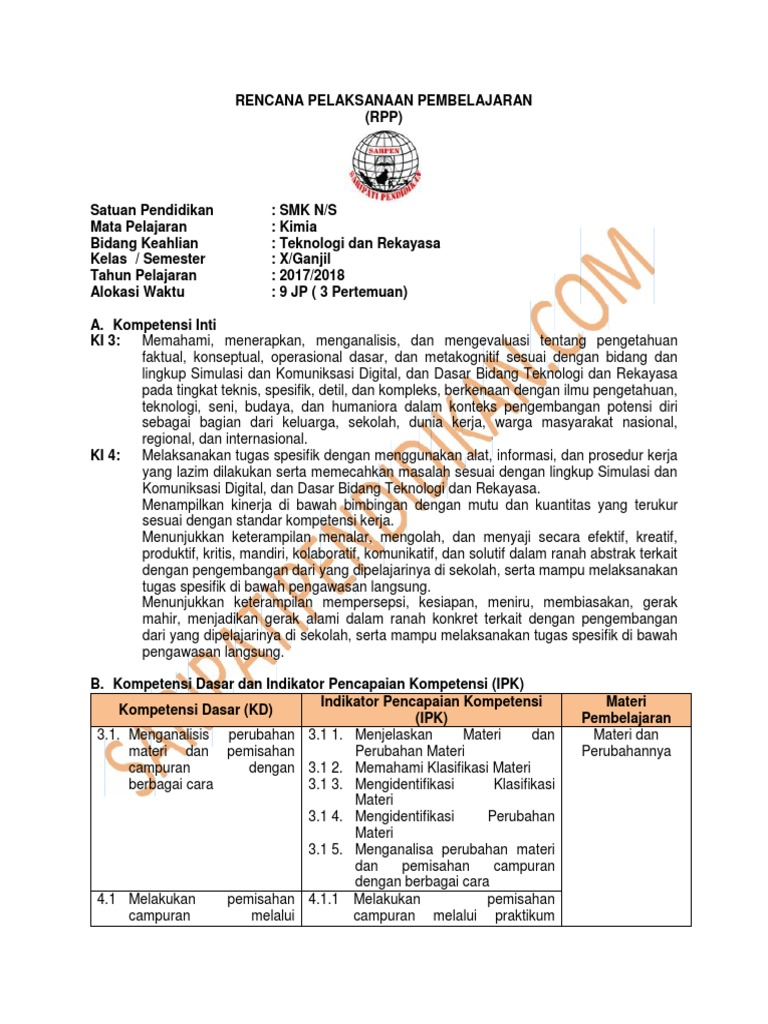 Rpp Klasifikasi Materi Dan Perubahannya Kurikulum 2013 Revisi 2017 Ilmusosial Id